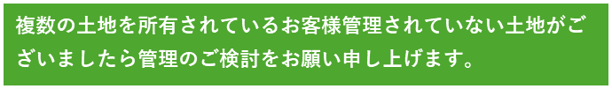 ご所有地の利用予定がある方は良いですが、特にない方は土地が少しでも多くの方に把握してもらえるように、売地の案内をさせていただいております。